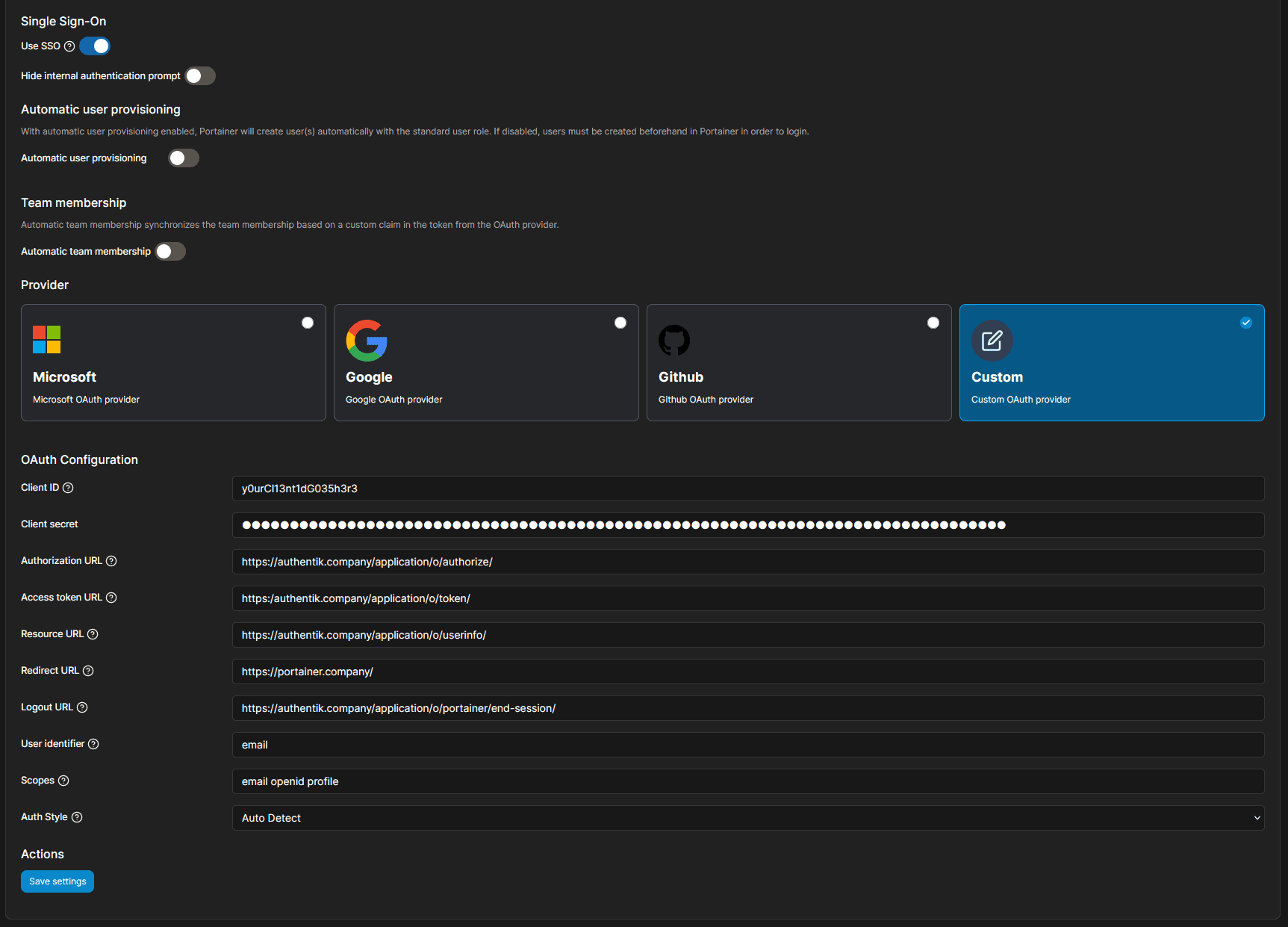 portainer.companyis the FQDN of the Portainer installation.authentik.companyis the FQDN of the authentik installation.